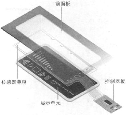如圖5 所示,一個觸摸屏系統包括:前面板、傳感器薄膜、顯示單元、控制器板和系統軟件。
