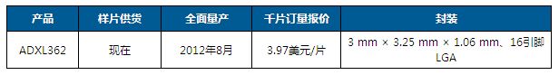 ADXL362:ADI公司推出業界功耗最低的MEMS加速度計