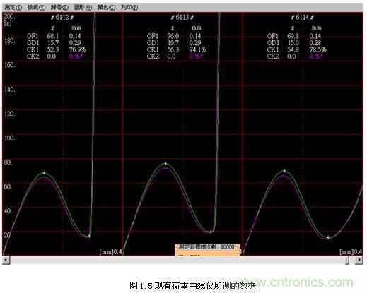 隨著電子技術(shù)與控制技術(shù)的快速發(fā)展,按鍵開(kāi)關(guān)荷重位移曲線儀也要跟上時(shí)代的步伐,從一開(kāi)始只能測(cè)出OF、OD和CK值發(fā)展到現(xiàn)在能同時(shí)測(cè)出23個(gè)參數(shù),有PK,CK,RPK,RLK,LK等值,可以通過(guò)設(shè)定上下限來(lái)保護(hù)儀器被壓壞荷重感應(yīng)器。最小顯示行程也從1mm發(fā)展到現(xiàn)在的0.001mm,最小顯示荷重也從10克精度到現(xiàn)在的0.01克精度,界面設(shè)定也從嵌入式發(fā)展到現(xiàn)在利用WINDOWS中文視窗畫(huà)面設(shè)定,操作簡(jiǎn)單方便,且所有資料皆可儲(chǔ)存(試驗(yàn)條件、荷重曲線圖、測(cè)試結(jié)果、檢查報(bào)表…等等)。