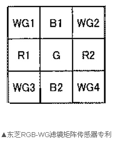 東芝RGB-WG濾鏡矩陣傳感器專利現已公布,新專利將改善RGBW濾鏡矩陣傳感器在弱光環境下出現的顏色飽和度不足問題。