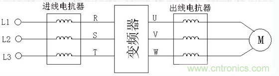 變頻器輸出側(cè)安裝輸出電抗器,減少電纜的電磁輻射和位移電流;