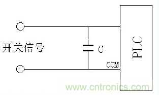 有時(shí)PLC或其它控制器的開關(guān)量輸入由于受外界干擾影響而瞬間輸入錯(cuò)誤,導(dǎo)致PLC產(chǎn)生誤動(dòng)作,這時(shí)在PLC的輸入端并上一個(gè)0.1uF的小電容就可以消除這種干擾,如下圖所示: