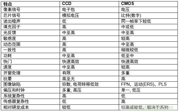 另一方面,CIS有較低采樣頻率,可以減小像素讀出所需要的帶寬,因而瞬時噪聲也較小。快門會同時對陣列上的所有像素進行曝光。但是CMOS傳感器采用這一方法的話,由于每像素需要額外的晶體管,反而占用更多像素空間。另外,CMOS每一像素擁有一個開環輸出放大器,而因著晶圓工藝的差異,每一放大器的補償和增益會有所變化,使高或暗的不均勻狀況都比CCD傳感器差。相對于同級的CCD傳感器,CMOS傳感器擁有較低的功耗,而芯片上其它電路的功耗也比CCD經優化模擬系統芯片匹配的解決方案來得低。取決于供貨量并考慮到CCD導入外部相關電路功能的成本,CMOS的系統成本也有可能低于CCD。表一總結了CCD和CMOS的特點,有些功能有利于一種或其他技術,所以毋需完全分割整體性能或成本。不過,CMOS的真正優勢是通過系統級芯片(system-on-chip)方式實現導入靈活性,以及其低功耗特點。