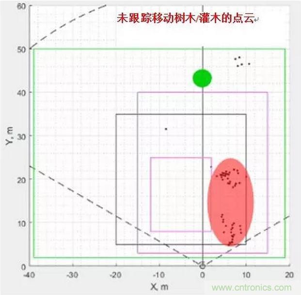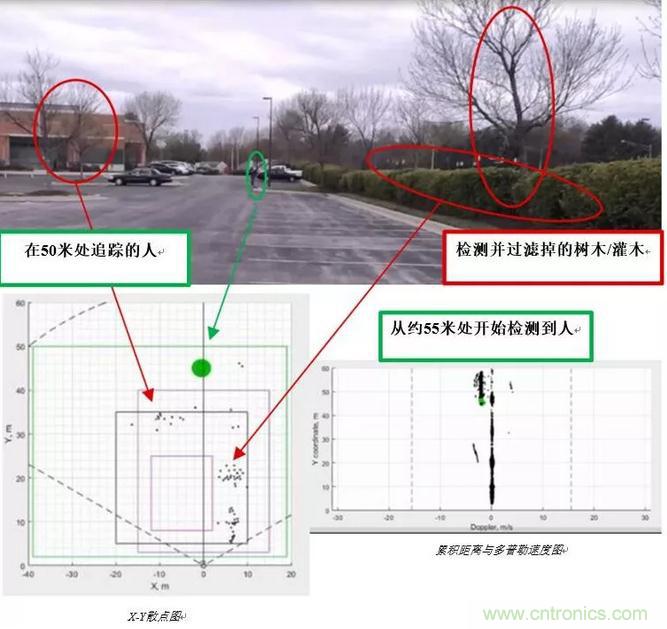 圖2顯示了使用毫米波技術的入侵檢測;毫米波傳感器分析場景中對象的速度,過濾掉移動背景中的運動,僅跟蹤人物。