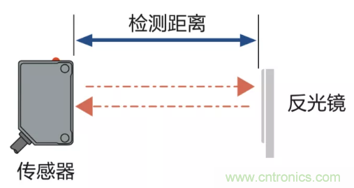 鏡面發射型光電傳感器:傳感器和反射鏡之間的距離