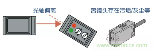現在的大部分光電傳感器都有自診斷輸出功能。我們知道光電傳感器最怕的就是灰塵、油污等干擾的影響,所以自診斷功能讓傳感器鏡頭受到灰塵污垢等干擾受光量不穩定時會輸出報警信號。