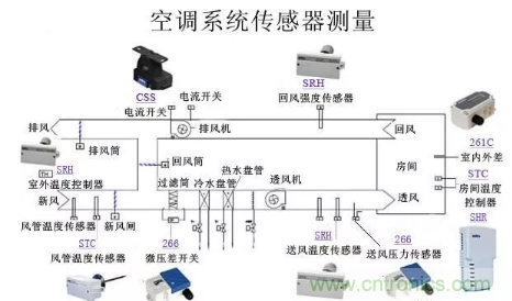空調送風系統傳感器應用原理圖例和熱交換系統傳感測量原理圖